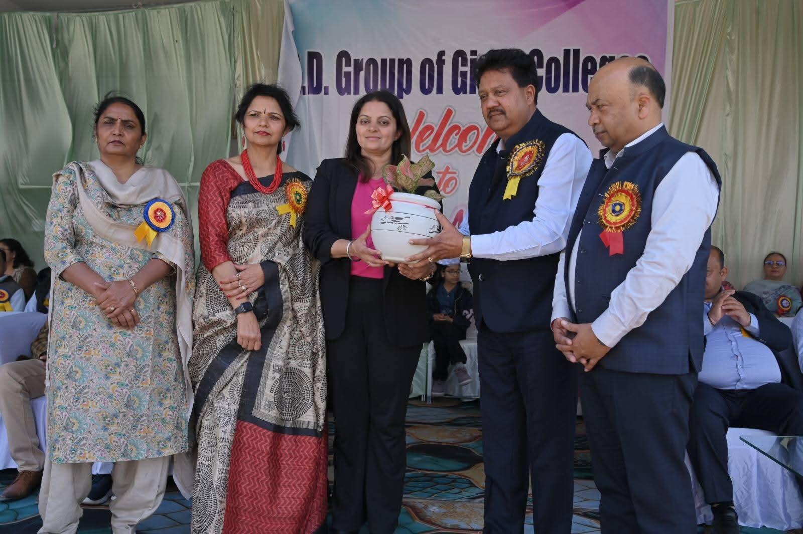 The Chief Guest honoured the Band Students from S.S.D Public School. He addressed the spectators by saying that such types of Sports Meet are necessary for the institutions to arouse the team spirit in students. He also appreciated the continuous efforts of the S.S.D institutions for uplifting the society.The Vote of thanks was delivered by Dr. Neeru Garg (Principal, SSDGC and SSDWIT). Sh. K.K. Aggarwal (Vice-President SSD Sabha), Sh. Vikas Garg (Gen. Sec., SSDGC), Sh. Sudarshan Goyal (Sec., SSDGCE), Sh. Ashutosh Chander (Sec., SSDWIT) and other executive members witnessed the entire festival. Dr. Bimla Sahu (Principal, SSDGCE) was also present.The stage was conducted by Dr. Ekta Garg (Associate.prof. CS). After the prize distribution ceremony, the sports meet was declared closed.Adv. Sanjay Goyal and Sh. Vikas Garg congratulated Dr. Neeru Garg, and sports incharges: Ms. Anjali Garg(Computer Dept.) Ms. Navita Singla (Management Dept.) and all the faculty members.